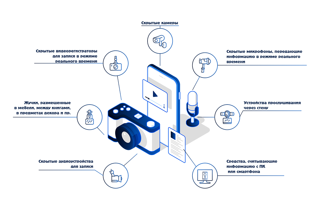 В первую очередь мы обследуем кабинеты руководителя, переговорную, отдел бухгалтерии. Именно здесь обсуждаются наиболее важные коммерческие данные: ноу-хау, стратегии развития компании, данные о финансовом состоянии, клиентская база или сведения о самих клиентах. Если по итогам проверки обнаружатся жучки, диктофоны, иная прослушивающая аппаратура, наши специалисты примут эффективные меры по её обезвреживанию. В случае отрицательного результата – Вы обретёте уверенность и спокойствие.